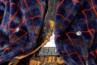 Concernant le post instagram qui dévoile cette surprenante nouvelle, on découvre les indices de 3 pièces. Une veste type fausse-fourrure qui appuie ses forces sur le concept d’un tartan coloré basé sur un combo de bleu, rouge et de marron. Des ensembles full print devraient également être au rendez vous à l’image de ce pant et de cette veste aux imprimés jaune et noir. Un ultime détail laisse découvrir une boucle de ceinture ornée d’un ostentatoire et pourtant basique lettrage “Gaultier Supreme”.