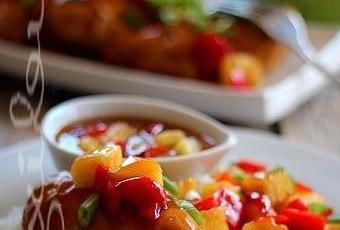 1)Rincer la dinde et l'éponger, chauffer l'huile dans une grande poêle à feu moyen-vif jusqu'à ce qu'elle soit chaude. Faire brunir la dinde de tous les côtés. (moi, omis cette étape car j'ai pris des poitrines de poulet). Transférer la dinde dans la mijoteuse, disposer les ananas et le poivron par dessus. (moi j'ai ajoutée la boîte complète d'abricots également).