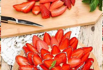 - Pendant ce temps, coupez les fraises Ciflorette Label Rouge en morceaux dans la hauteur du fruit