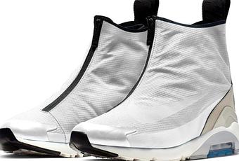Pour l’occasion, le modèle Air Max 180 de Nike à été modifié pour une botte futuriste qui n’est pas sans rappeler une autre collaboration récente, la Air Fear of God 1 de Jerry Lorenzo. La ressemblance continue dans les coloris de la paire : ce même blanc / sail et noir. Néanmoins, la comparaison s’arrête là et Yoon Ahn puise également ses inspirations dans l’esthétique beaucoup plus futuriste des Bamba 2 de Boris Bidjan Saberi, notamment dans le zip central. Néanmoins, la version de la jeune designeuse n’est pas dans le techwear pure, afin de laisser une certaine liberté pour des outfits divers et variés.