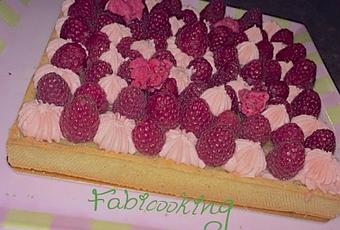 - Mettre la crème dans une poche avec une douille crantée ou unie de 10 . Vous pouvez soit la pocher sur toute la surface de la tarte et poser les framboises à même la crème, soit alterner crème et framboises comme moi!