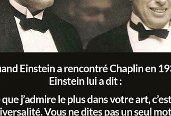 Quand Einstein a rencontré Chaplin en 1931, Einstein lui a dit : " Ce que j'admire le plus dans votre art, c'est son universalité. Vous ne dites pas un seul mot et, pourtant, tout le monde vous comprend. "