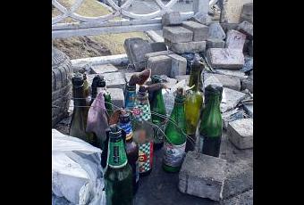 - d’une bouteille en verre partiellement remplie (environ à la moitié) d’un liquide très inflammable (éthanol, essence, méthanol, et cætera.),