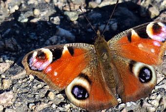 Inachis io (Paon du jour) : Les individus nés en automne hibernent dans un lieu un peu humide (terrier, anfractuosité de rocher, cave...) et réapparaissent dès les premiers jours ensoleillés de l'année suivante.