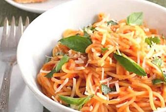 recette spaghettis à la sauce tomate ww . un délicieux plat de pâtes au basilic et fromage pour votre dîner.
