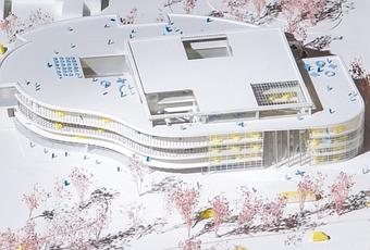La proposition consiste en un bâtiment extrêmement flexible qui, plutôt que d’être adaptable à l’infini, est conçu de manière à pouvoir accueillir presque toutes les activités. Le bâtiment, composé d’une structure totalement rationnelle à l’intérieur, donne simultanément forme à l’extérieur à la limite amorphe de la parcelle et aux boulevards urbains, aux rampes et aux cercles tournants. Une série de patios thématiques fournit la lumière du jour, une expérience spatiale et des relations entre différentes activités. Paysage, ambitions urbaines, logistique et architecture forment un tout indissociable.