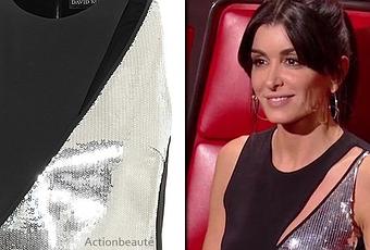 Pour le premier episode KO de The Voice, Jenifer porte un ensemble noir et argenté du créateur David Koma.