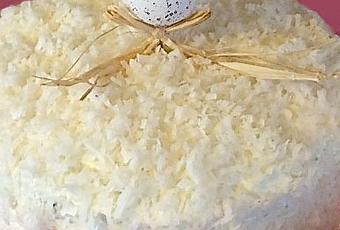 - J'ai personnellement voulu garder un gâteau tout blanc plutôt que de passer la noix de coco râpée quelques minutes au four pour les dorer.