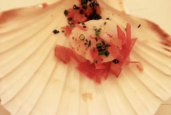 Parmi la pléthore des mini plats, aussi différents, divers, et plaisants les uns que les autres, on retiendra quelques assiettes délectables. Les Saint-Jacques rôties, jambon Ibaïama, pain maïs ; les sublimes Pommes de terre farcies de pieds de cochon de Christian Constant ; la Langoustine patte rouge de casier, pieds de cochon, cassis et girolles du grand Nicolas Magie ; et l’œuf au plat et Vuleta d’Antoine de Rocca Serra.