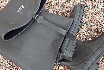 Niveau chaussures, on retrouve une semelle moulée équipée de larges crampons assurant une bonne accroche au sol. De quoi satisfaire ceux pratiquant des petits parcours ou ne s'aventurant pas au milieu des rivières bien plus larges.