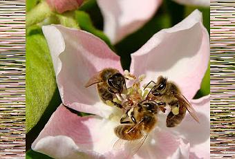 En témoigne ce groupe d'abeilles affairé à tirer le meilleur de cette fleur lavée de rose et de blanc. Observer leur travail nous a occupés pendant de longues minutes. Les abeilles s'étaient octroyé chacune un coin et décortiquaient méticuleusement les pistils ...