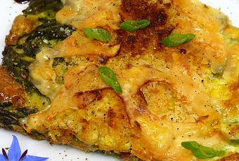 La recette slovène préconise d'utiliser un fromage à pâte dure, parfait avec le parmesan. Le goût des oeufs est bien présent et se marie à merveille avec les asperges fondantes. Mi-omelette, mi-gratin, ce fut délicieux !