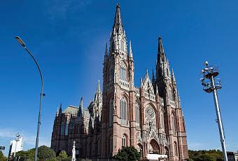 Œuvre conjointe de l’Argentin Pedro Benoit (Buenos Aires, 1836-Mar del Plata, 1897), de l’Allemand Ernest Meyer, né à Hanovre, et du Français Emile Coutaret (Thiers, 1863-La Plata, 1949), à la suite d’un concours international lancé en 1882, l’année de fondation de la capitale de la toute nouvelle Province de Buenos Aires (1880), la cathédrale de l’Immaculée Conception de La Plata est une merveille de l’art néo-gothique en Amérique du Sud. Elle a été inscrite au patrimoine de l’UNESCO. Elle passe pour avoir été le décor du mariage de Perón et de Eva Duarte mais ils se sont mariés à l’église paroissiale St-François d’Assise.