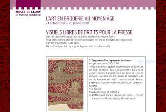 Musée de Cluny  « La broderie médiévale »  24 Octobre 2019 au 20 Janvier 2020Musée de Cluny  « La broderie médiévale »  24 Octobre 2019 au 20 Janvier 2020Musée de Cluny  « La broderie médiévale »  24 Octobre 2019 au 20 Janvier 2020Musée de Cluny  « La broderie médiévale »  24 Octobre 2019 au 20 Janvier 2020