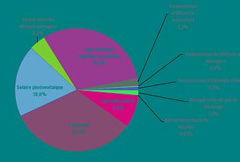 Selon France PAC Environnement, l’objectif de 100 % d’énergies renouvelables en France en 2050 n’est pas une utopie. La biomasse solide reste la première source de production d’énergie renouvelable, suivie de très près par l’éolien puis le photovoltaïque, lui-même suivi de très près par le biogaz ».