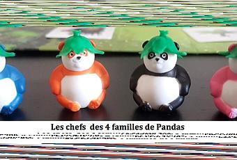 Choisissez une des 4 couleurs de Pandas (le Chef avec un chapeau et 5 sans le chapeau). 2 pandas et le Panda à Chapeau sont placés sur la zone de départ correspondante du plateau. Les autres constituent votre réserve.