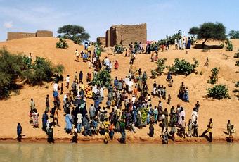 Le fleuve Niger traverse six pays dont le Mali. En 2004, j'ai embarqué à bord d'un bateau allant de Koulikoro (port fluvial de Bamako) à Gao en passant par Ségou, Djenné, Mopti, Niafunké, Tombouctou... Nommé le Djoliba en Bambara, il est un fleuve mythique. Les mêmes scènes se répètent sur ses rivages depuis des siècles. Grâce au fleuve les hommes voyagent, échangent des marchandises, entrent en contact avec d'autres cultures... Ces images sont emblématiques. Elles révèlent l'intensité de ces instants où le bateau arrive. Se mettent alors en place des chorégraphies magnifiquement orchestrées, mêlant les couleurs vives des pagnes aux couleurs ocre de l'eau et des rivages. Il est difficile aujourd'hui d'observer ces scènes sans avoir en tête les conflits armés actuels venus ébranler l'équilibre des populations et créer un climat certain d'insécurité et de chaos.