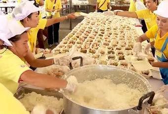 Couronnement Rama X: 9 000 volontaires préparent 300 000 repas au pont Rama 8 à Bangkok