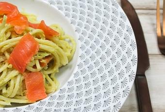 Coupez en lamelles le saumon fumé et ajoutez le aux spaghettis.