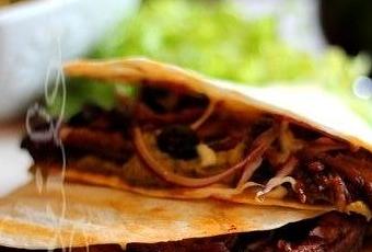 3)Plier les tortillas en deux. puis les ranger sur une plaque à pizza huilée. Cuire au four jusqu'à ce qu'elles soient dorées et que le fromage soit fondu.