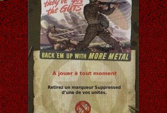 La phase de Réserve va vous permettre de déplacer uniquement toutes les unités n’ayant pas eu d’ordre ce tour-ci. On va ensuite jouer les différents éléments qui interviennent dans la partie comme les tests de peur, capacités spéciales, cartes actions de fin de tour, …. Vous allez également vérifier les conditions de victoire et si cette dernière n’est pas atteinte, on retire les différents pions posés pendant le tour (sauf les marqueurs « Suppressed » dont on ne retire qu’un par unité et par tour). Chaque joueur va pouvoir se défausser du nombre de cartes qu’il veut et en repiocher de façon à en avoir autant qu’indiqué dans le scénario de base. On avance enfin le curseur de tours en changeant l’initiative de camp.