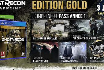 Les joueurs ayant acheté les éditions Gold, Ultimate ou l'Édition Collector bénéficieront d'un accès anticipé de 3 jours au jeu. Les JOUEURS ayant précommandé Tom Clancy's Ghost Recon Breakpoint auront accès à la Bêta du jeu au moment du lancement ainsi qu'au Pack Sentinel Corp. qui inclut des équipements exclusifs.