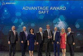 Cet " Advantage Award " est remis aux fournisseurs qui présentent un avantage concurrentiel et dont les produits ou services vont au-delà des objectifs de rentabilité attendus. Saft fournit des batteries à Boeing et Boeing Global Services via Aviall, distributeur stratégique pour les clients de Saft sur le marché des pièces détachées.