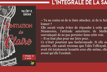 Le personnage de Claire est très intéressant car c'est une jeune femme de 23 ans qui assume complètement sa sexualité. Dès son plus jeune âge , elle a connu le sexe mais ne semble jamais avoir été pleinement satisfaite. Son entrée très exclusive dans ce manoir le prouve car si je puis dire le test d'entrée montre à quel point elle est libérée sur le plan sexuel. C'est une jeune femme également réfléchie, posée et curieuse. Elle s'imprègne des lieux , de l'ambiance et ne résiste pas à la tentation. Sa curiosité accrue sera rassasiée et Valery K Baran nous explicite clairement les codes très particuliers du monde BDSM.