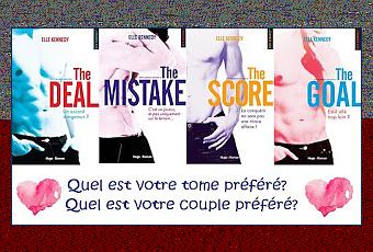 Vous dire quel a été mon tome préféré est le plus simple car celui avec Dean m'a fait mourir de rire mais The Deal aura aussi toujours une place particulière dans mon coeur. Quant à mon couple préféré , je dirais qu'il sera celui de Dean mais j'adore aussi Garrett qui est génial mais aussi Logan . Quant à celui sur Tucker , j'ai aussi aimé.