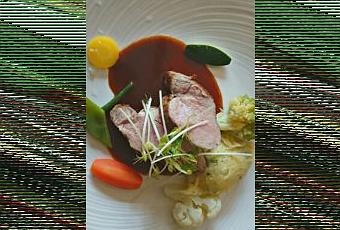 Il y avait un menu bien choisi par l’hôte. L’apéritif était un Tartre des Matjes à la salade de printemps et aux petites frites. Terre-à-terre, Allemand du Nord et bon, mais les crêpes de pommes étaient un peu gras à mon goût. Les crèmes de curry aux tranches de mangue étaient un changement délicieux et bien choisi. Pour le plat principal, il y avait un très bon filet de cochon avec des herbes sur la sauce à la bière au malt et les légumes. Le Palatine Pinot Blanc et Pinot Noir de la Nahe étaient bons et appropriés au menu choisi.