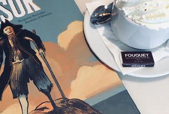 Couverture de la bande dessinée " L'ïle au Trésor " - Casterman Alors que je suis tranquillement au Café Beaubourg à Paris à déguster un chocolat viennois tout en lisant " L'île au Trésor " paru aux Editions Casterman, Nicolas Gilson démarre une nouvelle journée de projections à Cannes qui l'emporte dans une quête du bonheur.