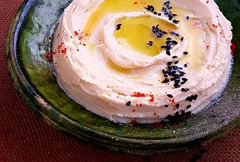 - نضع الحمص في طبق التقديم، نسكب فوقه زيت الزيتون، السمسم والفلفل.