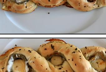 Aujourd’hui je vous montre un façonnage de pizza qui change j’ai pris l’idée sur Pinterest. Nous avons beaucoup aimé cette pizza par sa forme et son gout.