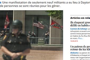 Il y a presque une sorte de malaise à évoquer cette situation grotesque. Imaginez donc : 9 suprémacistes blancs, qui se revendiquent pompeusement - de quoi ajouter au ridicule - Honorable Sacred Knights (les Honorables ¹ chevaliers sacrés), encerclés par plusieurs centaines de militants antiracistes pacifiques, et qui doivent se réfugier derrière des grilles, protégés par des policiers... Et leurs discours couverts par le bruit des centaines de contre-manifestants, rendus inaudibles...