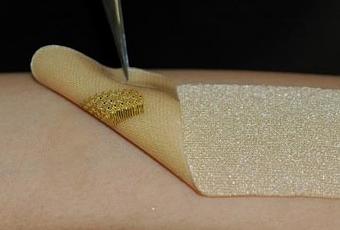 Une plate-forme de nouvelle génération pouvant s'intégrer au tissu biologique : c’est plus largement l’objectif des recherches de ce laboratoire, qui conçoit des capteurs intégrables aux différents types de tissus, cutané bien sûr, mais aussi neural et cardiaque. Ce capteur qui reprend, à l’identique, la microarchitecture de la peau, portable, est équipé de câbles de capteur en or capables de présenter une mécanique similaire à celle de l'élasticité de la peau. C’est donc le prototype d’une nouvelle génération de capteurs capables « de se fondre parfaitement dans le corps et sur la peau » du patient porteur de plaie, et qui analyse les données chimiques et physiologiques liées au processus de cicatrisation.