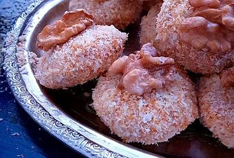 - Rouler les ghribas dans la noix de coco torréfiées.