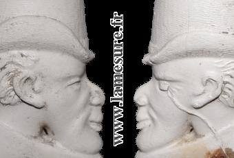 Une source encore plus originale est celle des têtes de pipes de la Maison Gambier. Cette dernière est une importante fabrique de pipes en terre cuite, fondée à la fin du XVIIIe siècle, fermée dans la première moitié du XXe et située à Givet, ville frontière du nord-est de la France. Elle édite une grande quantité de différentes têtes (ou bols) de pipes, dont beaucoup ont la forme de têtes, notamment d'originaux de la seconde partie du XIXe siècle, comme ceux présentés ici qui sont en terre cuite blanche. Il existe des exemples émaillés.