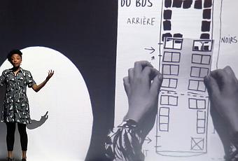 Le spectacle est présenté comme un théâtre graphique, comme on dit aussi roman graphique. Le texte est dit par une comédienne (Sophie Richelieu), une dessinatrice (Charlotte Melly) illustre en direct et accompagne son témoignage, montrant les lieux de l’audace, le bus, le tribunal, les inégalités entre blancs et noirs, entre hommes et femmes, entre adultes et jeunes, les tergiversations des responsables de la communauté noire. Et on comprend qu’un acte n’arrive jamais tout-à-fait isolé, qu’il est précédé de signes et déclenche des conséquences.