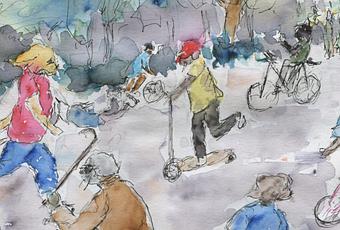 Roulez jeunesse ! Au propre comme au figuré. Sur votre vélo, votre trottinette, votre skate ou vos rollers. Mais je vous en prie laissez une place aux piétons sur les trottoirs ou dans les parcs publics. Se promener devient problématique. Et pas question de rêver : il faut slalomer sans arrêt pour éviter de se faire heurter.