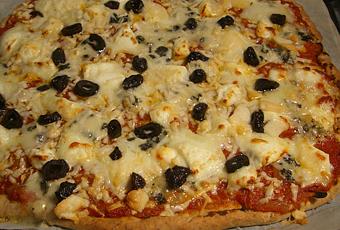 - Cuire sur la grille inférieur du four dans la plaque de cuisson ou directement sur une pierre à pizza pendant 8 à 10 minutes pour une pizza à croûte mince ou 10 à 15 minutes pour une pizza à croûte moyenne