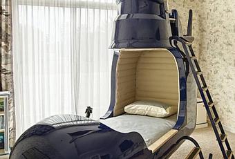 Ce lit a été désigné par le Cabinet d'architecture anglais Dragons of walton street . Chaque lit est personnalisé : joystick, cadran de vitesse, horloge, radio & haut-parleur.