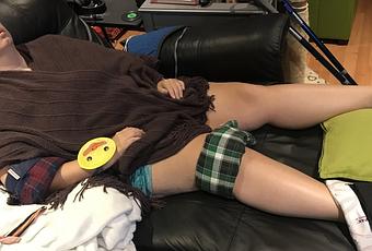 Ça aurait pu être bien pire… mais j’ai entendu (et senti) un ligament se déchirer dans ma cheville gauche. Je me suis aussi fait une légère entorse à la cheville droite, au poignet droit et au genou droit, me suis subluxé une côte et le coude droit, disloqué une épaule et me suis fait une légère entorse lombaire. Je ne suis pas sarcastique quand je dis que ça aurait pu être pire! J’aurais pu me disloquer une hanche et les deux épaules, par exemple. Heureusement, mon chéri me suivait de peu et est arrivé juste après ma chute. Il a pu courir chercher mes béquilles et m’aider à me relever. On s’est dépêchés de me faire entrer dans la maison, car je savais que, si j’arrivais à me déplacer sur le coup grâce à l’adrénaline, ça ne durerait pas.