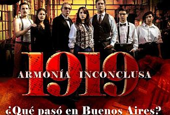 1919 Armonía Inconclusa (1919 Harmonie inachevée) est une comédie musicale militante qui évoque la Semaine Tragique, cette révolte ouvrière du sud de Buenos Aires, autour des Ateliers Varsena (détruits depuis), férocement réprimée par la majorité de droite dure qui gouvernait l’Argentine au lendemain de la Révolution bolchévique en Russie. C'était il y a cent ans.