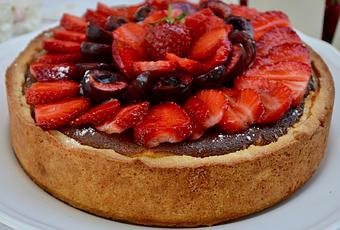 Il me restait un demi pot de fromage blanc, quelques fraises et quelques cerises (mais pas suffisamment pour faire une tarte) alors ni une ni deux j'ai revisité ma tarte au fromage blanc aux fruits des bois. Et finalement c'est cette version que je préfère, elle est mois sucrée et les fruits rouges apportent une belle note de fraicheur et puis je la trouve plutôt jolie en plus !