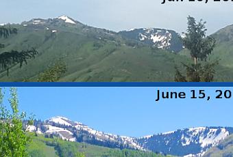 La photo du haut a été prise hier et celle du bas avait été tirée après cette année record en matière d’enneigement, le 15 juin 2011 pour être précis.C’est incroyable de voir à quel point nos souvenirs du temps passé ont bien du mal à retracer la réalité.