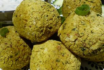 Une boîte de flageolets dormait dans le placard. Des herbes aromatiques et des épices plus tard, voici de petites boulettes végétales réalisées par ma fille. Il suffit de mixer tous les ingrédients, c'est facile !