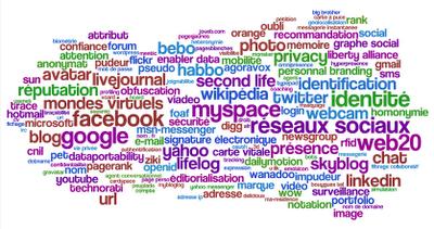 Ce qui me marque le plus dans le nuage de 2008, c'est le fait que les outils, services, organismes... sont plus nombreux que les concepts associés à l'identité numérique. On se trouve en face d'une effervescence phénoménale. On voit toutefois ressortir des termes comme "privacy" et "présence".