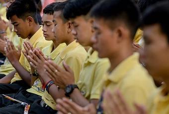 " Aujourd'hui est un jour très important pour nous car Saman est comme un second père pour nous ", a assuré Adul Sam-On, un des 12 jeunes, lors de cette commémoration organisée un an après cette mésaventure.