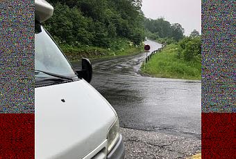 Nous avons donc quitté Weissbriach en Autriche le samedi 22 au matin en direction de la Slovénie. On se retrouve, non loin de Villach, sur une route étroite au dénivelé de 18%, dont la signification concrète ne nous a été révélée qu’au moment réel de son ascension. Un cauchemar. Nous avancions avec toutes les difficultés du monde, le levier de vitesse bloqué dans la position 2. Et cela ne fut pas suffisant, alors même que les véhicules légers nous doublaient dans des virages impossibles, en épingles à cheveux. Nous avons dû – sauvés par un espace réservé aux cas durs – être contraints de faire demi-tour avec mille et une précautions. Le moteur du Nomadeur n’en pouvait plus, l’huile chauffait. Tout cela sous une pluie battante. Nous avons pourtant été alertés la veille, lorsque nous avons roulé en position de seconde à une vitesse de 23 km/h quelques kilomètres avant d’arriver au village de Weilssbriach. Nous avons traversé une partie de la montagne (dont nous ne connaissons pas, et peu importe, le nom) en roulant en 2° position, le long de plusieurs virages en lacets tous aussi difficiles les uns que les autres, avec un dénivelé de 15%. Quelques centaines de mètres plus bas, nous avaons fait une pause bienfaitrice pour nous et le Nomadeur. Retour vers la route nationale. Nous avons pris la direction de Tarvisio en Italie, d’où nous avons rejoint la Slovénie. Nous avons passé la frontière Autriche-Italie pour la seconde fois (le premier passage étant au niveau de la ville italienne, Candido). De l’Italie nous ne verrons presque rien, puisqu’aussitôt la frontière franchie, et comme le Liechtenstein (ou presque), on se retrouve de l’autre côté de la frontière, en Slovénie, dans la ville de Ratece. La pluie n’a pas cessé jusqu’à notre arrivée en Slovénie. Le ciel est resté bien couvert et les nuages s’accrochent aux flancs des montagnes.