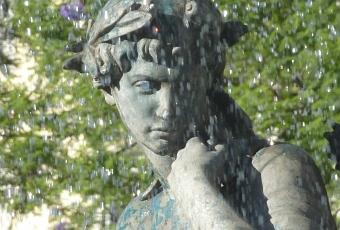 Lisbonne, détail de la fontaine du Rossio un jour de juillet (photo Christian Cottet-Emard)